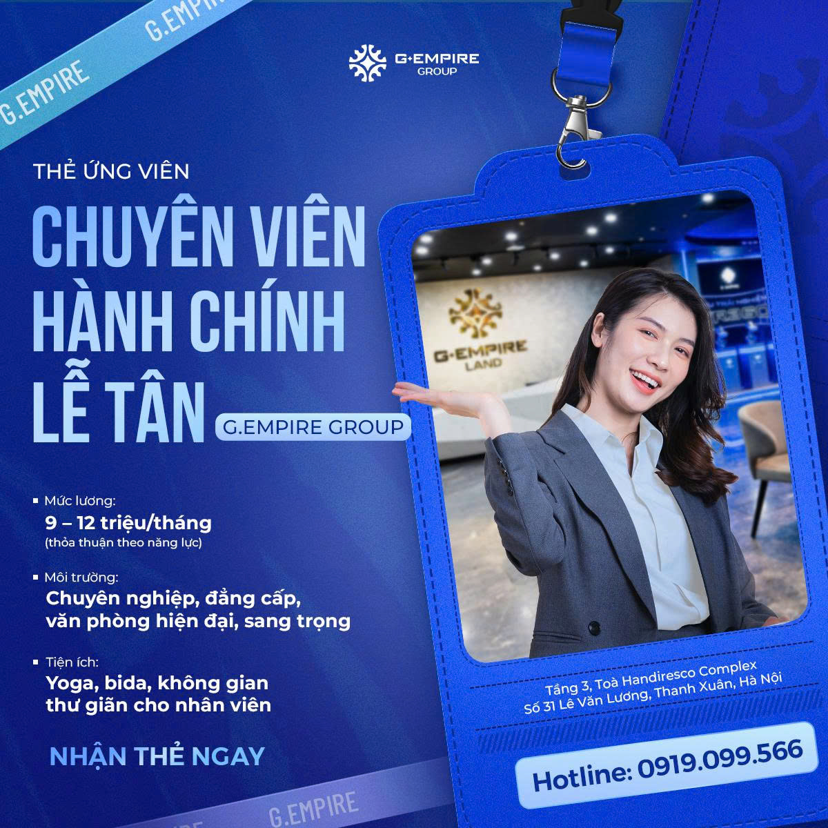 CHUYÊN VIÊN MARKETING – KIẾN TẠO NHỮNG CHIẾN DỊCH “TRIỆU VIEW, TRIỆU DEAL” Nếu bạn đam mê Marketing, yêu thích Bất động sản và muốn tham gia vào các chiến dịch quy mô lớn cùng đội ngũ top đầu thị trường,👉 G.Empire Land – đơn vị phân phối BĐS dự án số 1 – chính …
